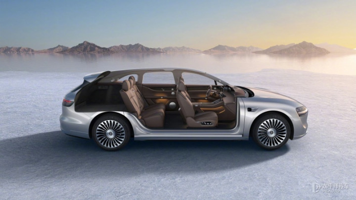 车身侧面是享界S9T的精髓所在,采用了猎装车车身造型,搭配21英寸星辉轮毂,加上修长流畅的车身,视觉效果非常优雅。车尾部分,新车采用了全新贯穿式星云尾灯,造型更具辨识度,同时右侧尾灯下方带有“享界S9T”标识。